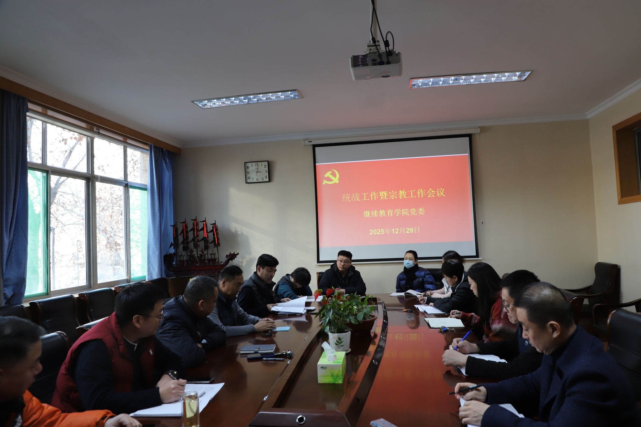12月29日,济南大学继续教育学院党委召开统战工作暨宗教工作专题会议,全体党员干部、各科室主任及部分党外人士参会,会议由学院党委书记、院长孙喜武主持。